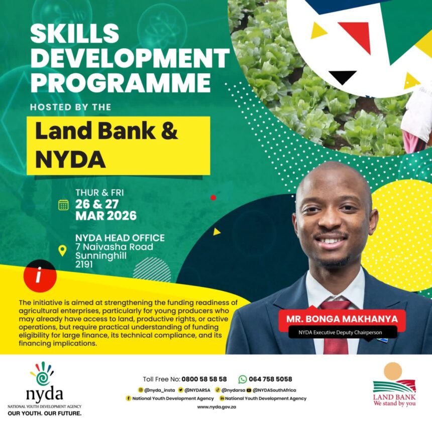 The National Youth Development Agency (NYDA), in partnership with Land Bank, is hosting a Funding Readiness Programme aimed at empowering youth in agriculture. The programme will take place on 26 and 27 March in Johannesburg.